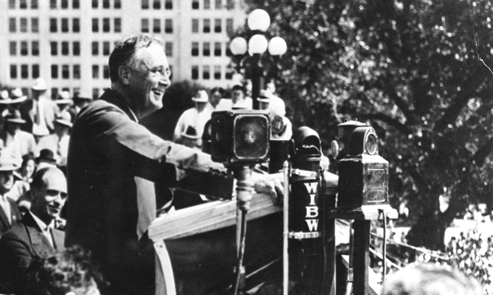 Indeed, as FDR’s governance segued into his 1932 campaign for the presidency, he increasingly communicated on a national stage. Governor FDR criticized President Herbert Hoover’s hands-off approach to the nation’s economic ills as ineffectual and inhumane, shaping his own vision of a government that would act “along definitely constructive, not passive lines” for the people’s good.